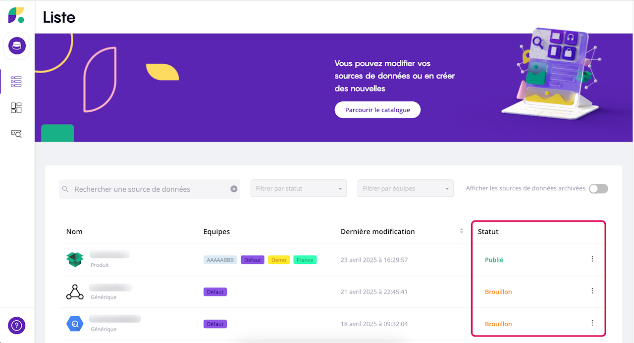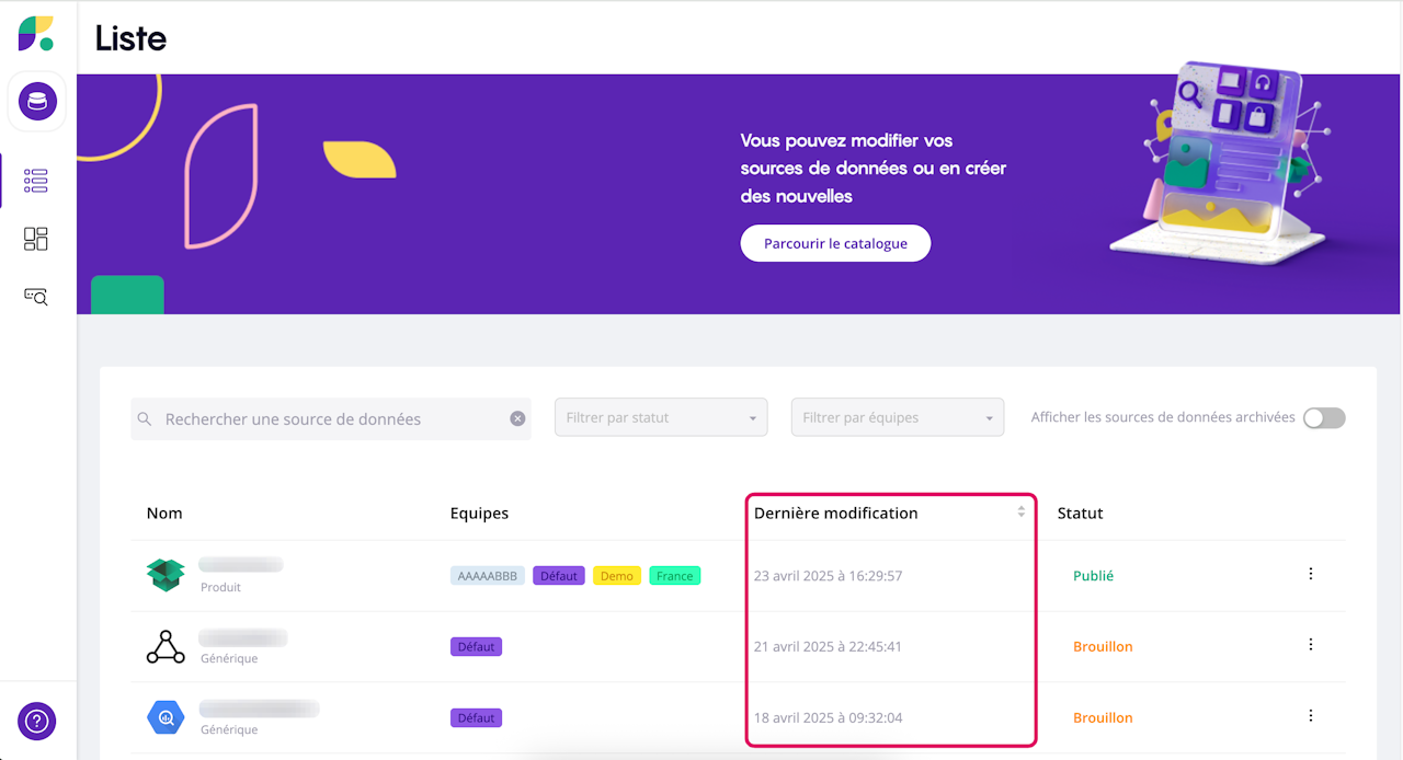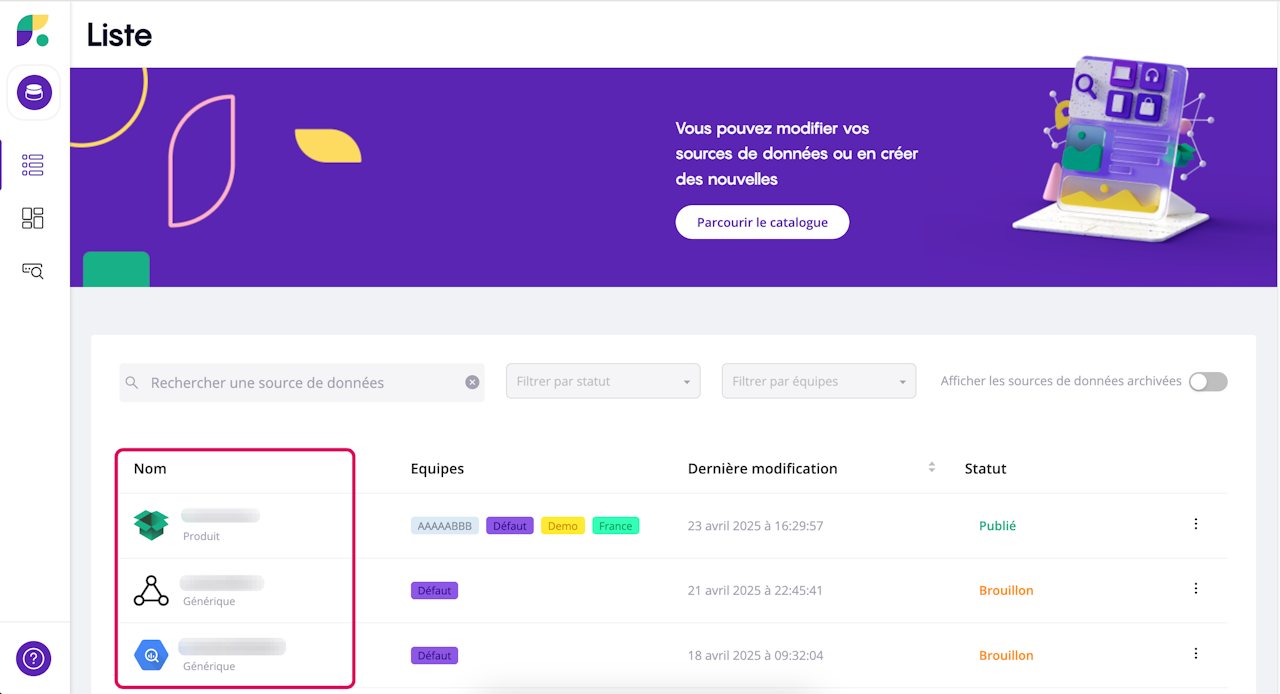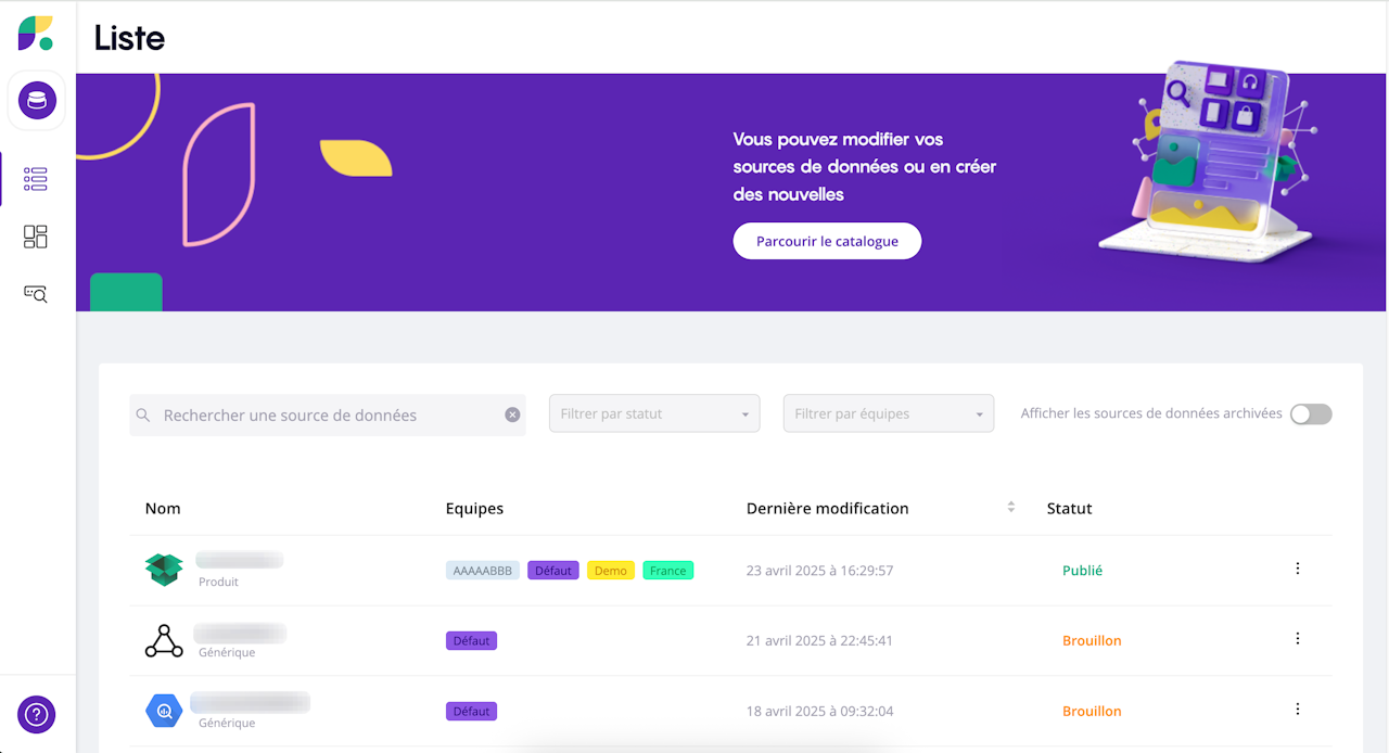 Once your data sources have been imported, they are all grouped together on the platform’s main page so that you can easily find and edit them if necessary.