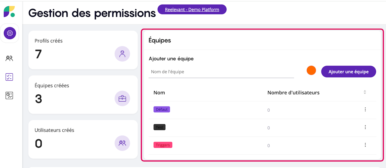 Cela vous permet d'éviter les confusions pour la création de workflows / contenus, d'avoir des statistiques par équipe sur l'app statistiques et de ne pas mélanger les flux sur le Data Source.