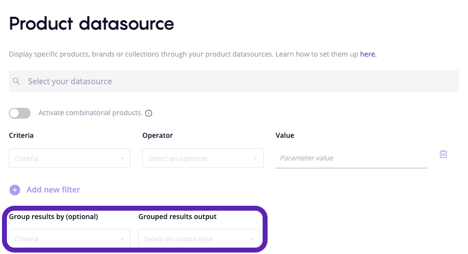 It enables you to group results by a datasource's field, such as Product Categories, Brands or Collections.