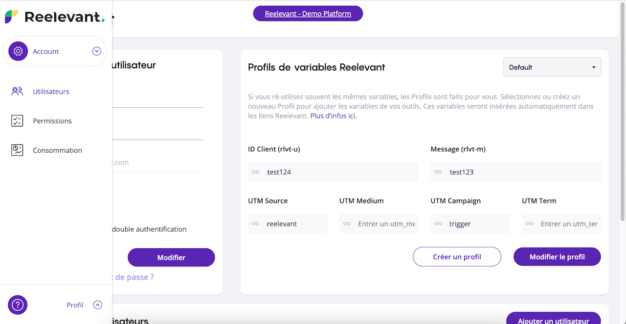 Accès : https://account.reelevant.com