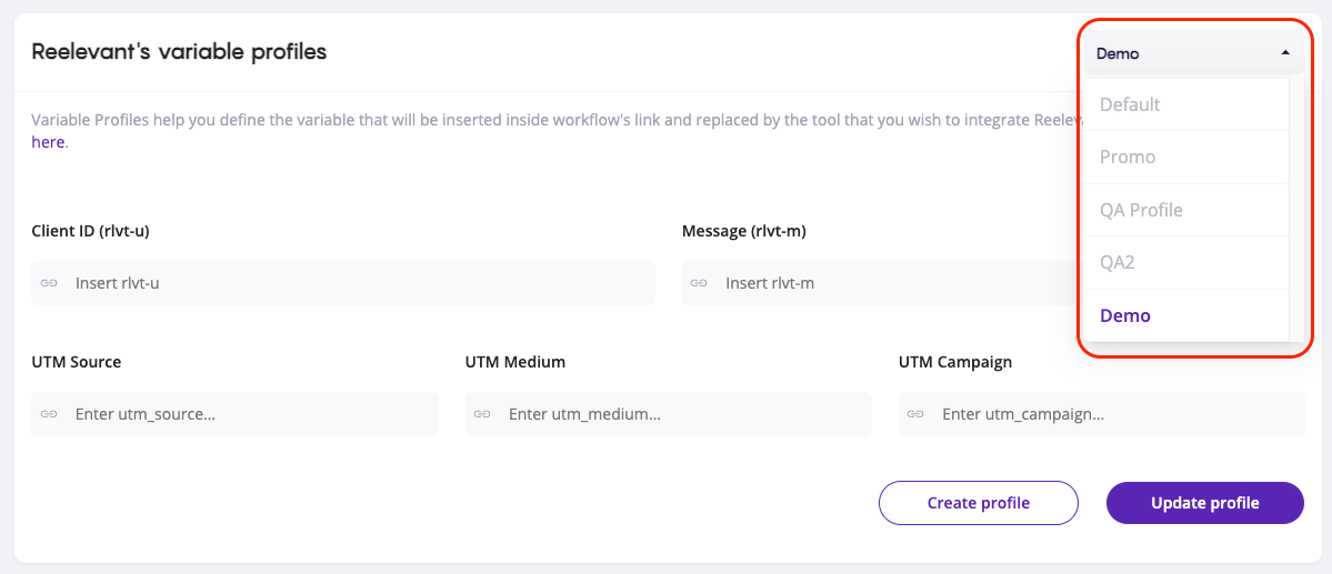 Utilisez les profils variables de Reelevant pour générer automatiquement votre identifiant client, votre identifiant de campagne et vos UTM dans vos URL Reelevant.