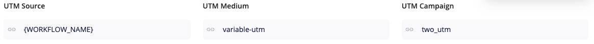 "UTM Source" peut également contenir une variable {WORKFLOW_NAME}. Cette variable sera automatiquement remplacée par le nom de votre workflow.