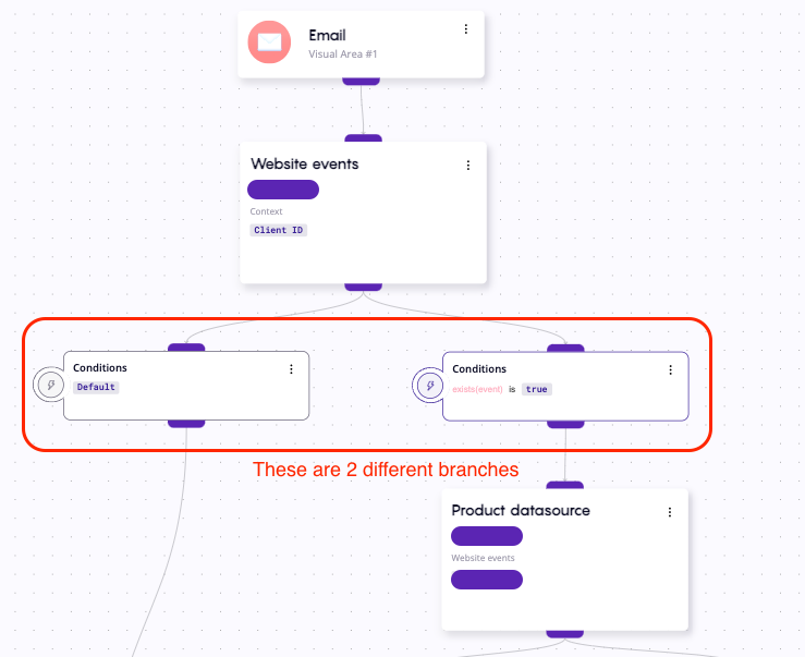 Conditions - Pour diviser les utilisateurs entre ceux qui correspondent aux conditions et ceux qui n'y correspondent pas.